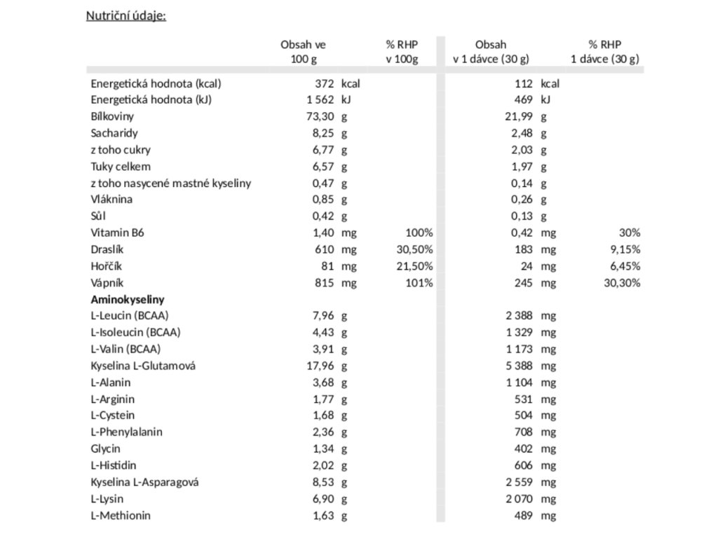 Dávkování: 1 odměrka (30 g) do 200–250 ml vody nebo mléka